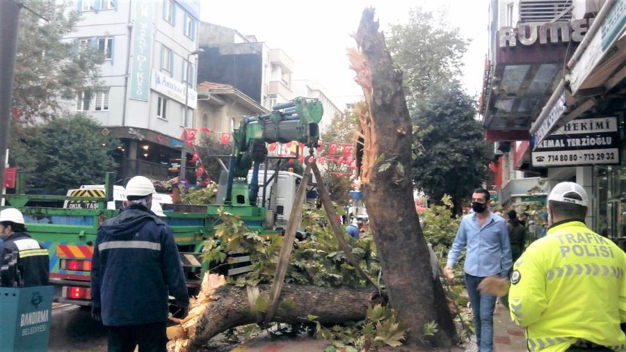 5 yıl önce olduğu gibi Atatürk Caddesi Erdem Özcan ve Dönmez Elektronik işyeri önündeki 2 çınar ağacının bir büyük kasalı aracın çarpması sonucu devrilmesinin ardından bu kez bir TIR aracının çarpması sonunda bir asırlık olduğu belirlenen bir çınar ağacı daha devrildi.