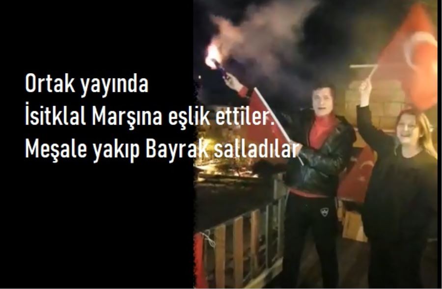 Akşam saat 21.oo randevusunda ise Başkan Mim. Hüseyin Sarı, Eşi Mim. Özlem Sarı ile birlikte çıktığı evin terasında meşale yaktı, bayrak salladı, İstiklal marşını söyledi.