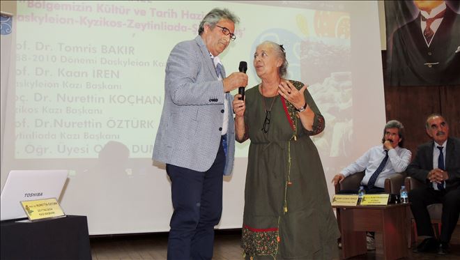 Tomris Bakır, 28 yıl boyunca yürüttü Daskyleion kazılarının 2 bin 500 yıl öncesine dayandığını ve Perslerin Anadolu´da bulunan 2 satraplığından yani valiliğinden olduğunu belirtti. Bakır, ?Ergili köyü yakınlarında 1988-2010 yılları arasında kazıları yürüttüm, bugün kazılar devam ediyor. İnsan yaşamını zenginleştiren tarihi çevre doğayı koruma anlamında Türk halkında ilgi giderek artmıştır. Ancak tüm çabalara karşın doğa ve tarihi çevre giderek yok oluyor. Tarihi kazılar turizm atar damarı bunun düşünerek hareket edelim ve Bandırma´yı önemli bir merkez haline getirelim. İki satraplık yani valilik merkezlerinden biri olan Daskyleion tarihe ışık tutmaktadır. Persler kaldıkları dönem boyunca ege kıyıları ile ticari faaliyetlerini devam ettirmişlerdir. Hematitten yapılmış bir ?Babil mührü? eper bir heyecan yaratmıştır. Bu mühür Bursa müzesine gönderildi. Bunun ardından kazılardan çıkan eserlerin Bandırma´da kalması için müze kurulması gerekiyordu. Bu durum bende müze kurma fikrini uyandırdı. 2000 yılında müzemiz tamamlandı. Dareikos 8 gramlık, tek altın para olarak antik dönemin tek altın parası olarak uzun süre devam etmiştir. Biz de kazılar başladığında tek bir Dareikos bulduk. Bu da Balıkesir Müzesine verildi ve oranın deposundan çalındı.? dedi. Töre Siviroğlu, çalınan paranın değerinin 12-15 milyon Dolar civarı olduğunu açıkladı. Prof. Bakır, Daskylein çevresinde 39 adet Tümülüs (anıt mezar) tespit ettiklerini aktararak, kaçakçılığın ve tahribatın çok daha geçmişte Bizans döneminde de yapıldığını anlattı. Daskylein kazı başkan yardımcı Prof. Sedef Çokay Kepçe de kendi dönemlerinde yapılan çalışmalar konusunda bilgi verdi. Kepçe ? Prof. Kaan İren Başkanlığında bizde 3. jenerasyon kazılarını yürütüyoruz. Elde ettiğimiz buluntuları bilim dünyasına ve topluma sunabilmek. Daskylein´u bir ören yeri haline getirmek istiyoruz. Sessiz turizm gölden ziyaretçileri taşıyan kürekli ya da yelkenli tekneler ile atlı arabalardan oluşacak bir yol planlanabilir. Manyas gölünün etrafı turizme uygun bir alan ? diye konuştu.