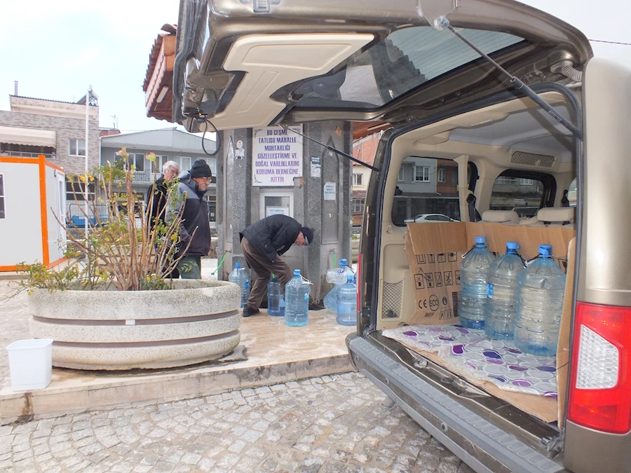 Vatandaşlar, mahallenin meydanında bulunup, Kapıdağ’dan gelen tatlı suya büyük ilgi gösteriyorlar.