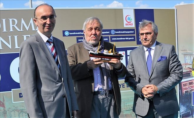 Prof. Dr. İlber Ortaylı´da Bandırma´daki etkinliğe katılması anısına Bandırma Vapuru maketi armağan edildi.