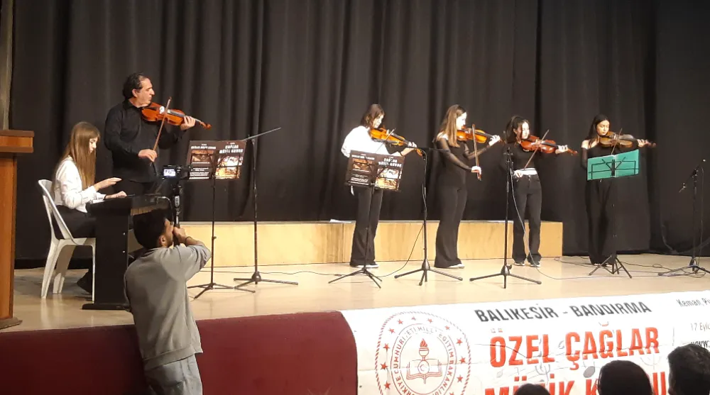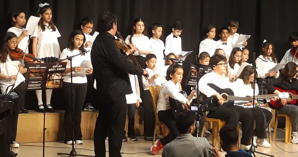 Barış Manço Kültür Merkezi’ndeki program sırasında salonun tamamen dolu olduğu dikkat çekerken, çocuk orkestrası da beğeni aldı.