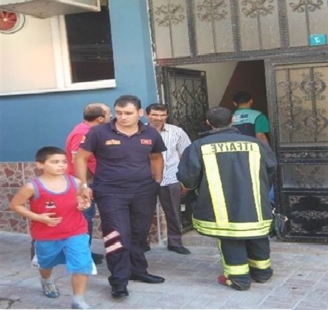 Bu esnada evden çıkan dumanı gören apartman sakinleri itfaiyeye haber verdi.