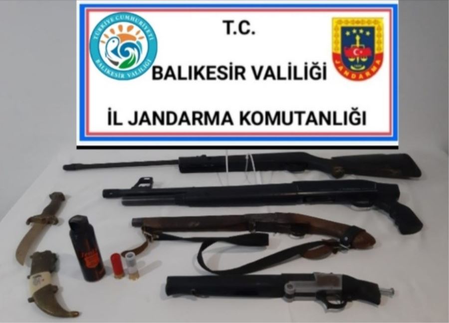 Çalıntı araçta yapılan aramada, M.T. ve K.T.’ye ait 1 adet bıçak, 4 adet ruhsatsız av tüfeği ve 1 adet havalı tüfek ele geçirildi.