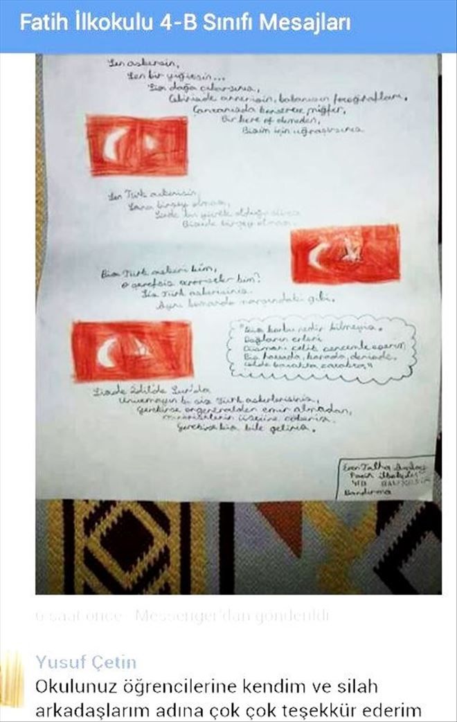 Bandırma 17 Eylül Mahallesi Fatih Ortaokulu Diyarbakır Sur cephesinde PKK ile sıçak temas halindeki Mehmetçiklere gönderdikleri moral mektuplarına yanıt geldi.