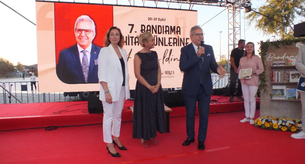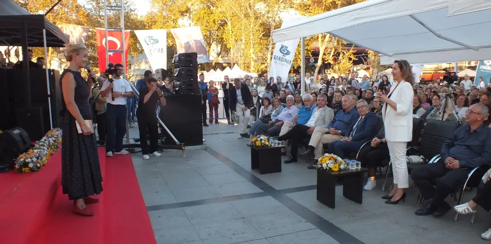 Söyleşinin ardından Düvenci’nin plaketini Bandırma Belediye Başkanı Dursun Mirza ve belediye meclis üyesi Elif Didem Çidem verdi. ÖNDER BALIKÇI