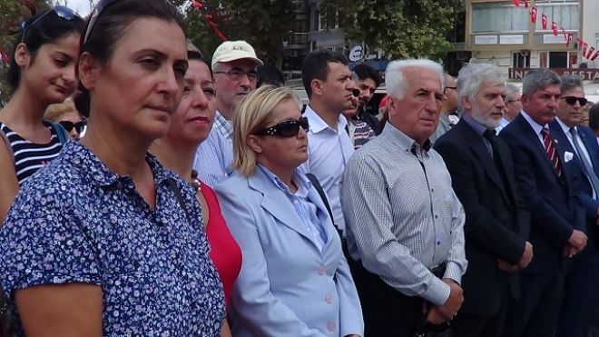 Cumhuriyet alanında saat 11.00 de çelenklerin anıta sunulması, saygı duruşu ve istiklal marşının okunması ile başlayan programda CHP Bandırma İlçe Başkanı Atilla Atakay, ADD Başkanı Melih Çınar ile Milletvekili Namık Havutça birer konuşma yaptılar.