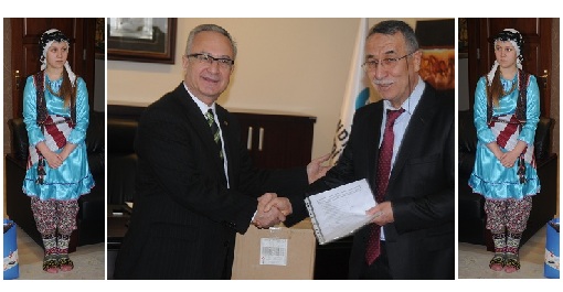 24 Kasım Öğretmenler Gününde kent genelinde gerçekleştirdiği kutlama ziyaretleri sırasında İlçe Milli Eğitim Müdürlüğü'nde konuyla ilgili olarak talepte bulunan öğretmenlerin isteğini geri çevirmeyen Başkan Pekel, İlçe Milli Eğitim Müdürü Şakir Demirhan'ı makamında kabul ederek Folklor kıyafetlerini teslim etti.