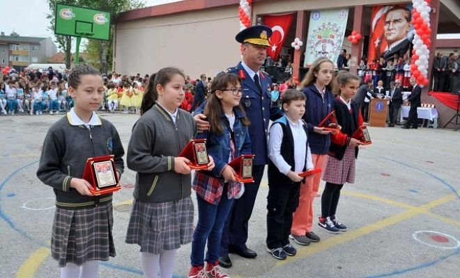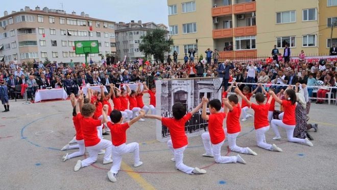 Bandırma`da Ulusal Egemenlik ve Çocuk Bayramı Cumhuriyet ilk okulunda yapılan genel törenle kutlandı.