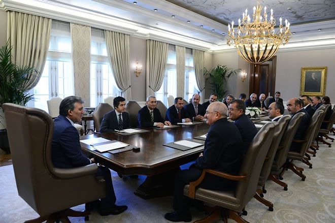 6 AĞUSTOS 2013-Cumhurbaşkanı Abdullah Gül, Ankara Ticaret Odası Başkanı Salih Bezci başkanlığında yeni seçilen yönetim kurulu üyelerine başarılar diledi.