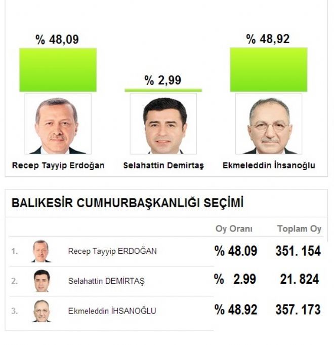 2. Ekmeleddin İHSANOĞLU % 48,92 357.173