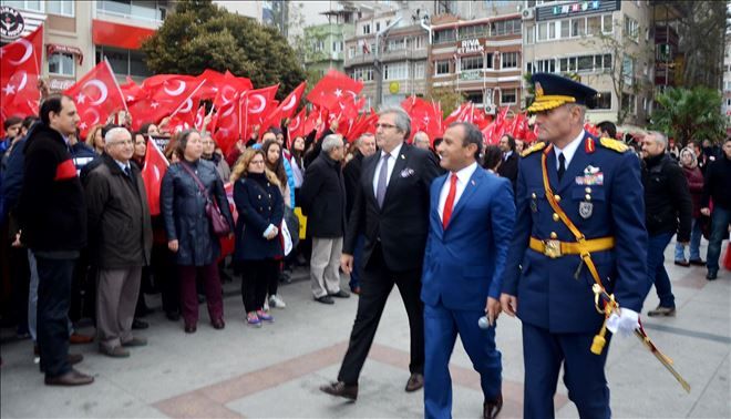 Kaymakam Tuncay Sonel, Atatürk´ün önderliğinde bize bırakılan aziz vatan ve bu ay yıldızlı al bayrak için nice kahramanların can verdiğini, nice kahramanları uzuvlarını kaybederek gazilik mertebesine ulaştığını vurgulayarak "Bu aziz vatanı bir avuç çapulcuya parlaşatmayız, ne bu aziz vatanı böldürütr, ne bu al bayrağı indirtir, ne de minarelerimizdeki ezanı sustururuz ." dedi.