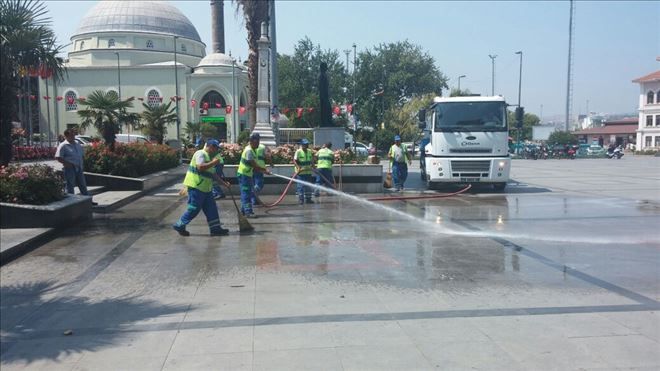 BANDIRMA BELEDİYESİNDEN CUMHURİYET MEYDANINDA TEMİZLİK ÇALIŞMALARI