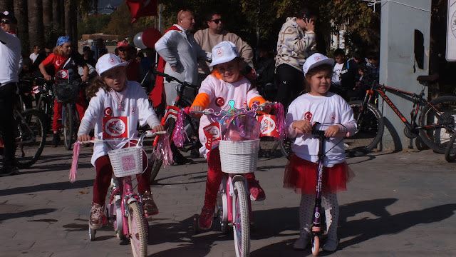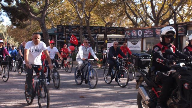 Cumhuriyet Bayramı etkinlikleri kapsamında bugün saat 14.30'da ilçemiz Ali Haydar Sarı Sahil Bandı'nda başlanarak bisikletlerle Kurbağalı Mevki'ne gidildi. Kurbağalı Mevki'nden de geri dönülerek Cumhuriyet Meydanı'nda noktalandı. Saygı duruşu ve İstiklal Marşı'nın okunmasıyla buradaki tören sona erdi.