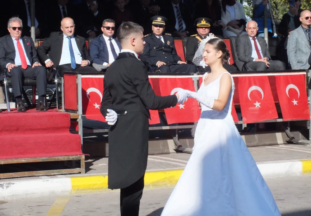 Cumhuriyet Caddesi’ndeki kutlama saygı duruşu ve İstiklal Marşı’nın okunmasıyla başladı.