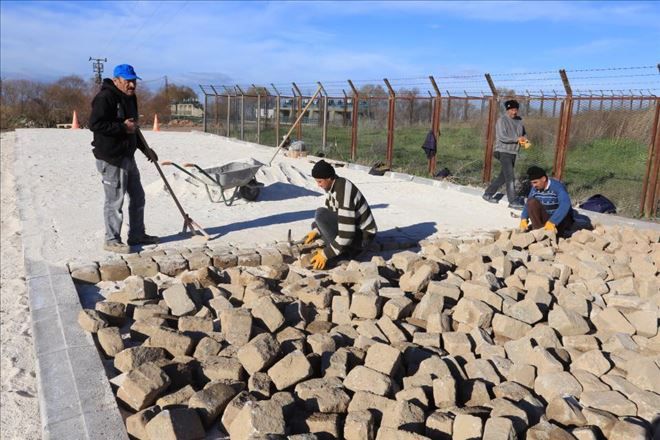 Bandırma Belediyesi Tarihi Antik Kent Daskleion´a 2. km .lik granit parke yol yapıyor.
