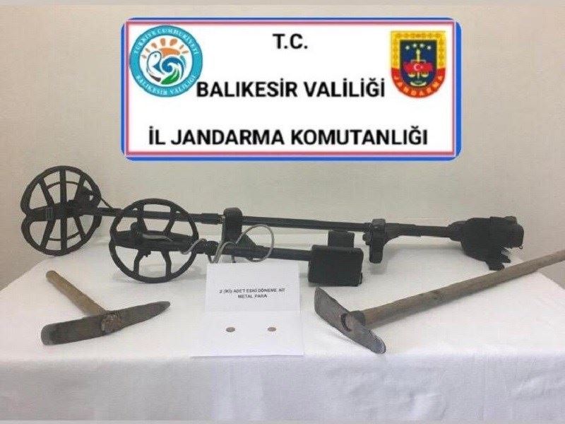 Ekipler, aldıkları bilgi doğrultusunda R.A., S.A. ve H.A. isimli kişileri yakalarken, kazı yaptıkları bölgede 2 adet sikke, 2 adet detektör ve 2 adet kazma ele geçirdi.