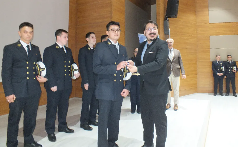 Prof. Dr. Fuat Sezgin Salonu’nda gerçekleşen törende, Denizcilik Fakültesi’nin “Gemi Ulaştırma ve İşletme Mühendisliği” ve “Gemi Makineleri İşletme Mühendisliği” bölümlerinin birinci sınıflarında okuyan 88 öğrenciye bröveleri takıldı.