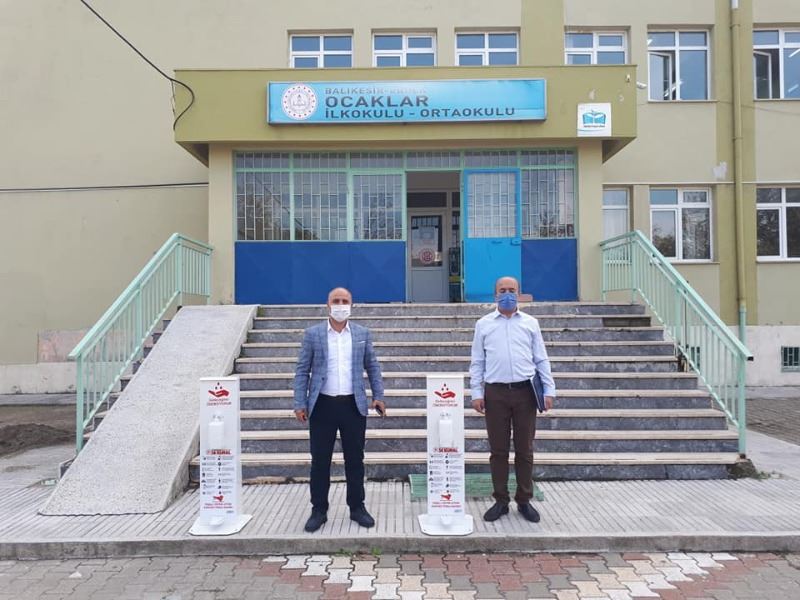 Erdek Belediyesi, ilçedeki okullara dezenfektan stantları dağıttı.