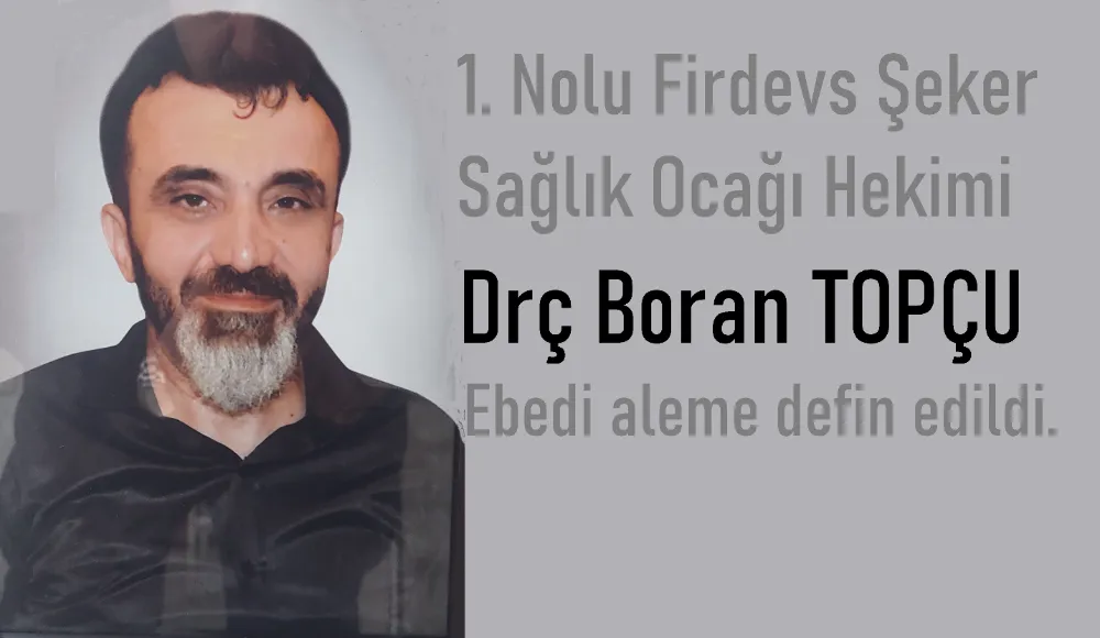 1 Nolu Firdevs Şeker Sağlık Ocağı Hekimlerinden Dr. Boran Topçu'nun (55) cenazesi Haydar Çavuş Camiinde kılınan cenaze namazı ardından ebedi alemdeki mekanına defin edildi.