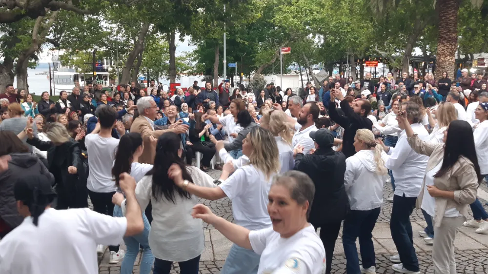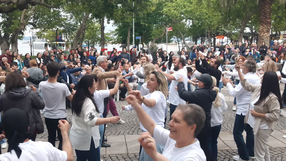 Her telden, her yöreden, her medeniyetten seslendirilen halk dansları “Bir Deniz, İki yaka, Kol Kola Sirtaki “ Erdek halk dansları topluluğu ve o topluluğa karışarak dans kardeşliğini müziğin ritmik atmosferine terk eden Erdekliler sıra dışı bir kutlamanın heyecanını yaşadılar.