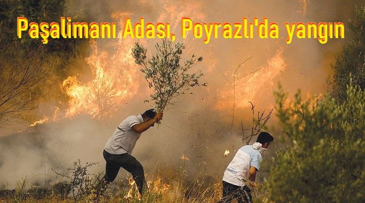 Paşalimanı Adası, Poyrazlı’da arsa ve parsel temizliği için yakılan ateş 600 dönüm mera ve zeytinliği kül etti.