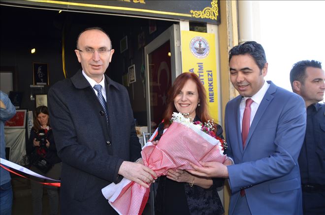 Barış Manço Kültür Merkezi Melih Çınar sergi salonundaki etkinlikte Halk Eğitim Merkezi Müdürlüğünde katıldıkları el sanatları kursunda gerçekleştirilen Ebru ve Kat-i sergisinin açılışını Kaymakam Günhan Yazar yaptı.
