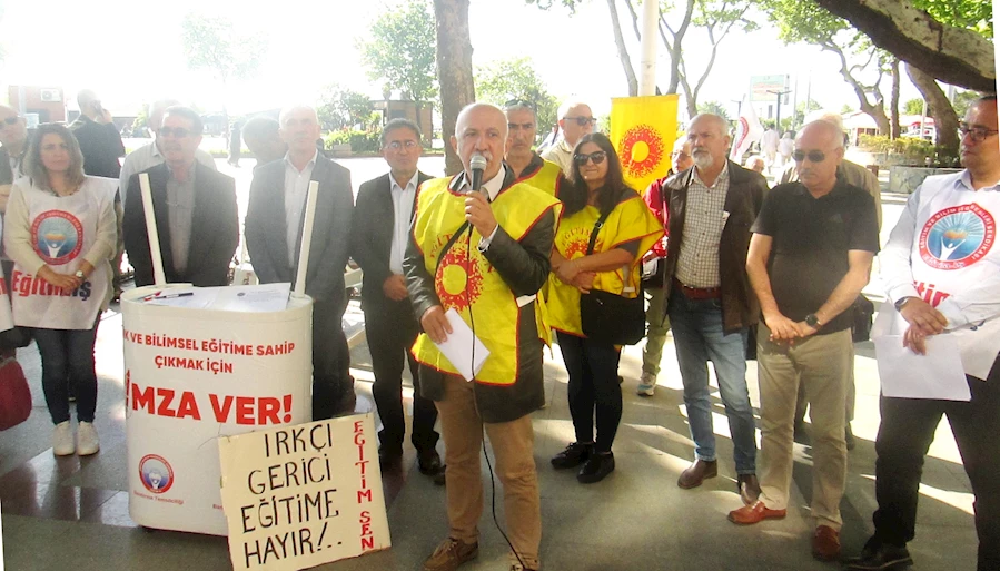 İmza kampanyasının açılışında ilk konuşmayı Eğitim-İş Bandırma Temsilcisi Serdar Polat yaptı. Polat, “Laik ve bilimsel eğitimi, Atatürk’ü ve Cumhuriyeti yok sayan eğitim programına hayır! Türkiye Yüzyılı Maarif Modeli’ni geri çekin!” çağrısının ardından şunları söyledi: