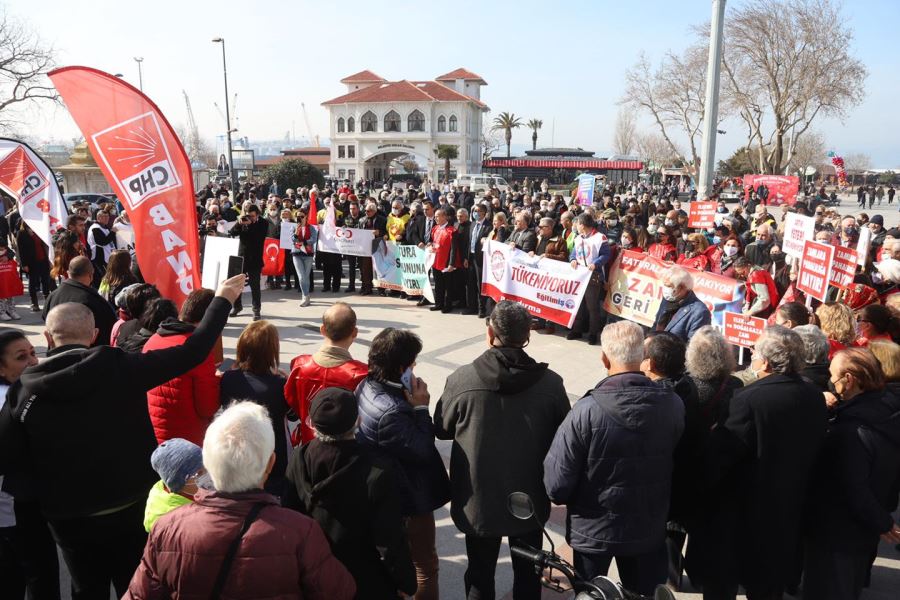Belediye Başkan Vekili Mesut Özdemir: “Bugün ülkemizin içinde bulunduğu siyasi ve ekonomik durum AKP iktidarının 20 yıllık yanlış politikalarının ürünüdür. Tarımdaki yanlış uygulamalar, hazine garantili ödemeler ile yapılan özelleştirmeler ülke tarihinde hiç görülmemiş bir yoksulluğa neden olmuştur. Son yapılan zamlarla birlikte vatandaşın evine, esnafın dükkanına, üretimin olduğu iş sahasına yüzde yüzün üzerinde zamlı elektrik faturaları gelmiştir. İktidar, vatandaşın haklı isyanına kulak tıkamış görünüyor. Bugün burada yalnızca elektrik faturalarını, zamları, hayat pahalılığını protesto etmiyoruz. İşsizliğin, yoksulluğun olmadığı, özgür ve bağımsız Türkiye özlemi için de buradayız” dedi.