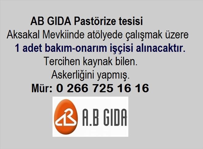 AB Gıda AKSAKAL TESİSLERİNE ELAMAN İLANI