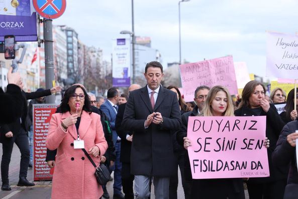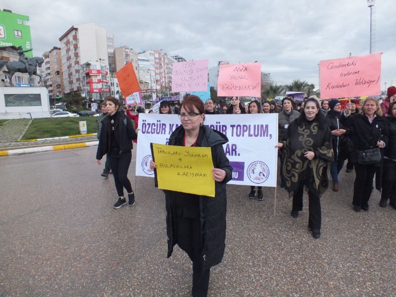 Savaşın, yoksulluğun, cinsiyet eşitsizliğinin ve muhafazakar politikaların sonucu neredeyse her gün bir kadının katledildiği, her türlü şiddete maruz bırakıldığı, haklarını savunanların cezaevlerinde rehin tutulduğu, kadın emeğinin rekabetçi, güvencesiz, esnek ekonomi politikaları dayatılarak sömürüldüğü, kadınların hukuksal haklarının gasp edildiği, kadını sadece aile ile tanımlayan, onu toplumsal alandan dışlayan gerici- ataerkil politikaların dayatıldığı, kadını güçsüzleştiren ve erkek şiddetine karşı savunmasız bırakmayı amaçlayan bu baskıcı ve çürümüş politikalara karşı kadın mücadelemizi yükselteceğimizin sözünü veriyoruz.