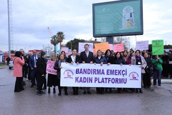 Bandırma'daki etkinlik her zaman olduğu gibi İDO peronu önünde başladı, hafif sağanak yağmura rağmen Kadın Platformu programında atlama olmadı. Ellerinde pankart, dillerinde marşları ile Cumhuriyet alanına gelen kadınlar bütünü, bölünmüş basın açıklamasını platform temsilcileri tarafından ayrı ayrı okundu. Olaysız geçen 8 Mart Kadın platformu kutlaması daha sonra günü diğer 8 mart kutlamaları ile devam etti.