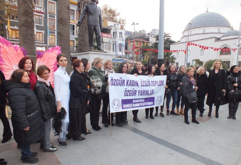 Bandırma Kent Konseri Emekçi Kadın Platformu, "25 Kasım Kadına yönelik şiddete karşı Uluslararası mücadele ve dayanışma günü" dolayısı ile gerçekleştirdiği etkinlikte geçmişten günümüze yaşanan kadın cinayetleri hazırlanan karoğrafi ile gözler önüne serildi.