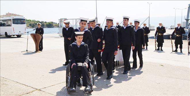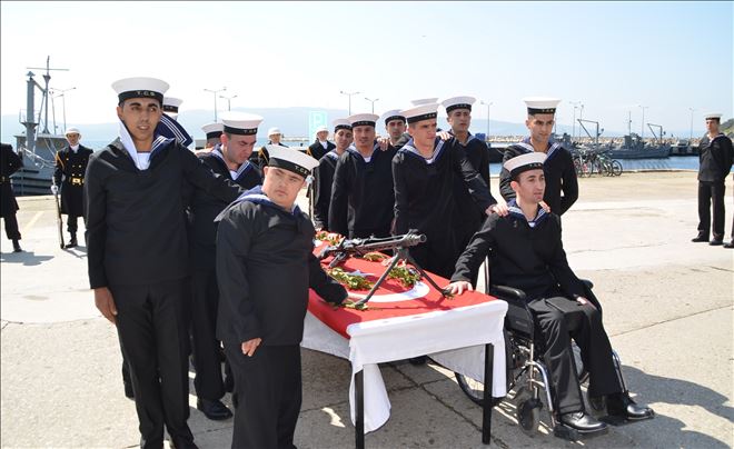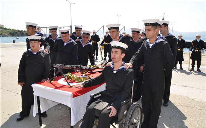 Erdek Deniz Üssü Mayın Filosu Komutanlığı´nda engelli bireylerin bir günlük temsili askerlik töreni gerçekleştirildi. Ailelerinin de izlediği törende engelli vatandaşlar Hüseyin Şahin, Lokman Karakuş, Hacı Bayram Bölükbaş, Orhan Kurban, Mikail Fırat, Muhammed Abdullah Coşkun ve İsmail Korkmaz yemin ettiler.