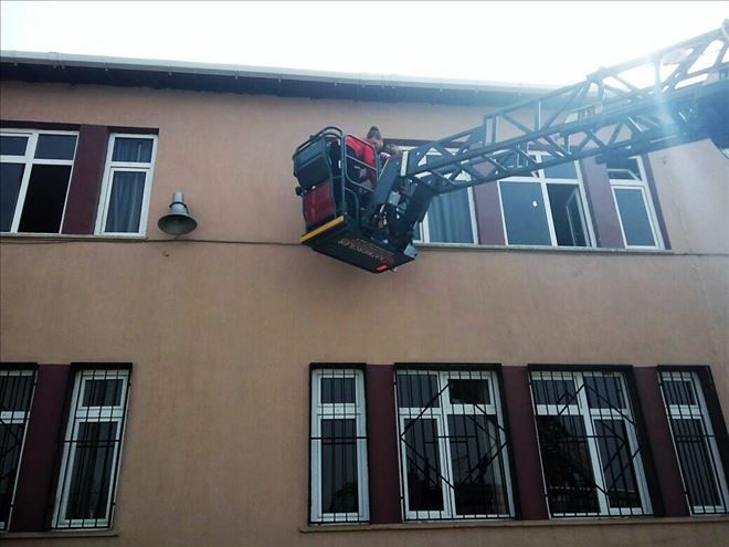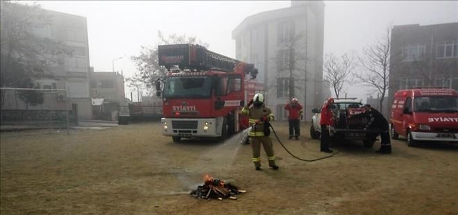 Erdek Anadolu lisesini tatbikat alanı olarak belirleyen Balıkesir Büyükşehir İtfaiyesi, Erdek müdürlüğü gerçeğinden ayırt edilemeyen tatbikat film gibi izlendi.