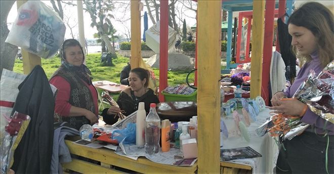 Erdek Anadolu lisesi "Kadına Şiddet" mesajı için MOR rengi seçti ve MOR´a boyanan ellerle Erdek cadde ve meydanlarında kadınlara çiçek dağıtıldı. Farkındalık yaratıldı.