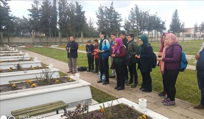 18 Mart Çanakkale Savaşlarının 103. yıldönümü ve Şehitler günü dolayısı ile okullarında bir dizi etkinlik gerçekleştiren Erdek Anadolu lisesi bu yıl ilk kez Bandırma Hava Şehitliği ziyaretinde bulunarak şehit kabirlerine çiçek bıraktılar, su döktüler dua ettiler.