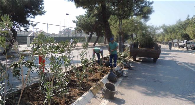 Bulvarın yay kaldırım kenarları güllerle çiçeklendirirken, orta refüj´ü zakkum ile yeşillendirerek kent girişine farklı bir görünüm kazandırıyor.