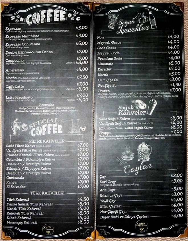 Neyyire & Sıtkı Caddesi çay bahçeleri güzergâhında Mavi İnci Otel´in lobi bölümünde iki caddeyi kapsayan dizaynı ile müşterilerine kapılarını açan Caffè La Famoso ilk gün müşterilerinden olumlu tepkiler almaya başladı.