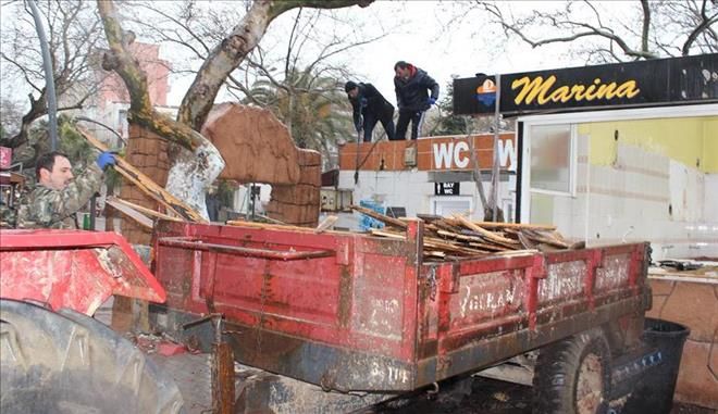 Erdek'te yıkımına başlanması ardından bir birini takip eden F tipi şikâyetlerle yenilenme çalışmalarına ara verilmek zorunda bırakılan Çay bahçeleri bugün itibariyle gelen olumlu yazılarla kalan bölümlerin yıkımına başlandı.