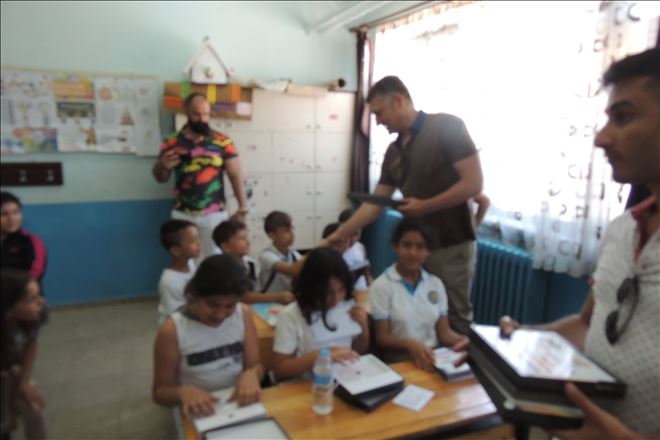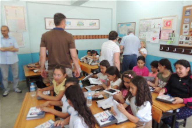 Sarı, 14 Haziran 2019 Cuma günü de Karşıyaka İlkokulu´ndaki üçüncü sınıf öğrencilerine tabletlerini dağıtacak. ÖNDER BALIKÇI