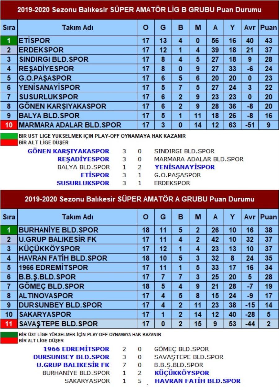 Balıkesir Süper Amatör Futbol Ligi’nde normal sezonu, 8 Mart 2020 Pazar günü oynanacak karşılaşmalarla sona erecek.