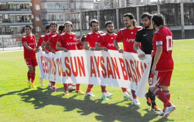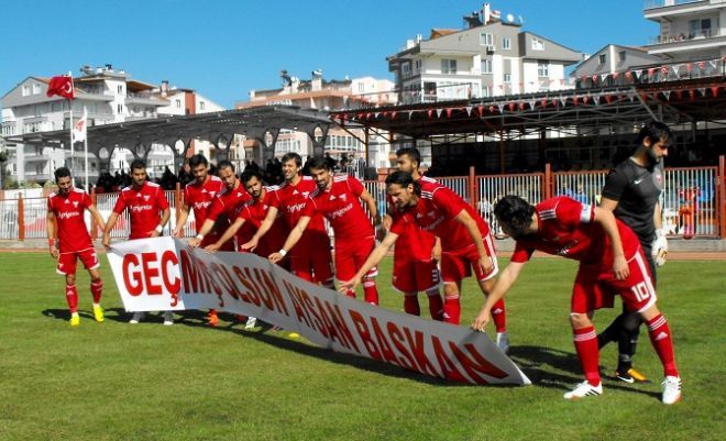 Erdekspor Sahaya ameliyat olan Belediye Başkanı Hüseyin Aysan`a ``Geçmiş olsun Başkan`` yazılı dövizle çıktı.