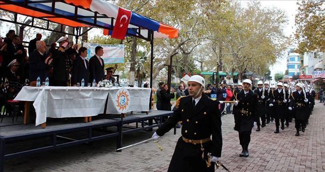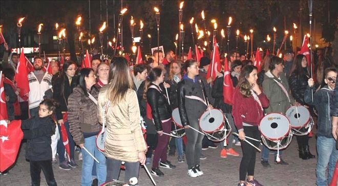 Erdekteki tören resmi geçit töreni ile sonlanırken, akşamda fener alayı düzenlendi.