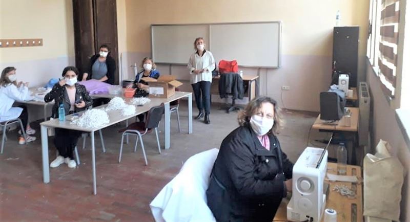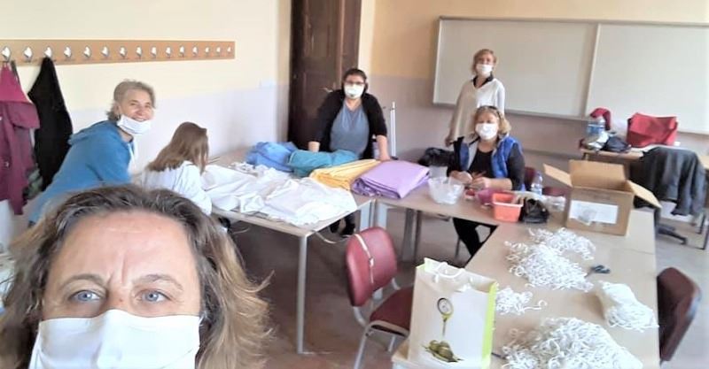 Erdek Kadın Dayanışma Platformu, Covid-19 salgınıyla mücadelede maske üretimi yapıyor.