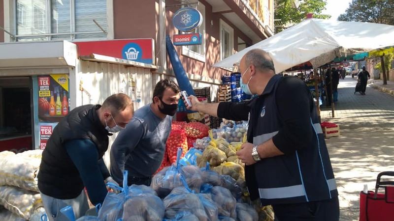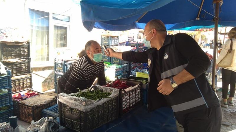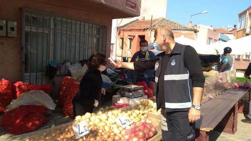 Erdek Belediyesi, Koronavirüs ile mücadele konusunda önlemlerini aksatmadan sürdürüyor. Bu kapsamda, pazartesi pazarında, vatandaşların her çeşit olası risklere karşı korunması amacıyla 20 yaş altı, 65 yaş üstü ve maske takmayan vatandaşlar ile ilgili kontroller gerçekleştiriliyor. Vatandaşların, pazar yerine alınmadan önce ateşleri ölçülüyor ve maske takmaları sağlanıyor. Aynı uygulama, pazar yerinde ürünlerini satan esnafa da yapılıyor.