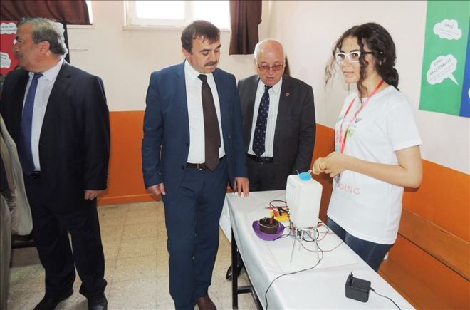 Müdürlüğünü Veysel Dikbıyık´ın yürüttüğü okulun bilim fuarında yer alan projeler arasında ?Akıllı Çiçek Sulama? projesi de yer alıyor. Okulun 7-C sınıfı öğrencisi Zülal Öz tarafından gerçekleştirilen proje, toprağın nemini ölçerek, bitkilere, ihtiyacı olduğunda su verme temeline dayanıyor. Projeyi yaşama geçiren Zülal Öz, ?Meslek Lisesi´ne elektronik öğretmeni olan dayım Nurdoğan Akay´dan aldığım bilgilerin ışığında hazırladığım bu projenin geliştirilmesi durumunda tarla ve seralarda çok yararlı sonuçlar vereceğine inanıyorum? dedi. Önder BALIKÇI
