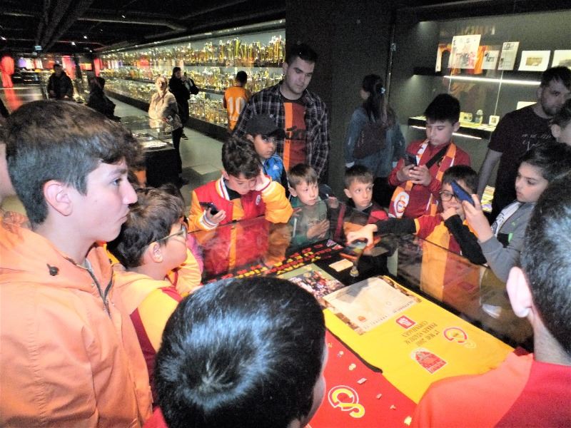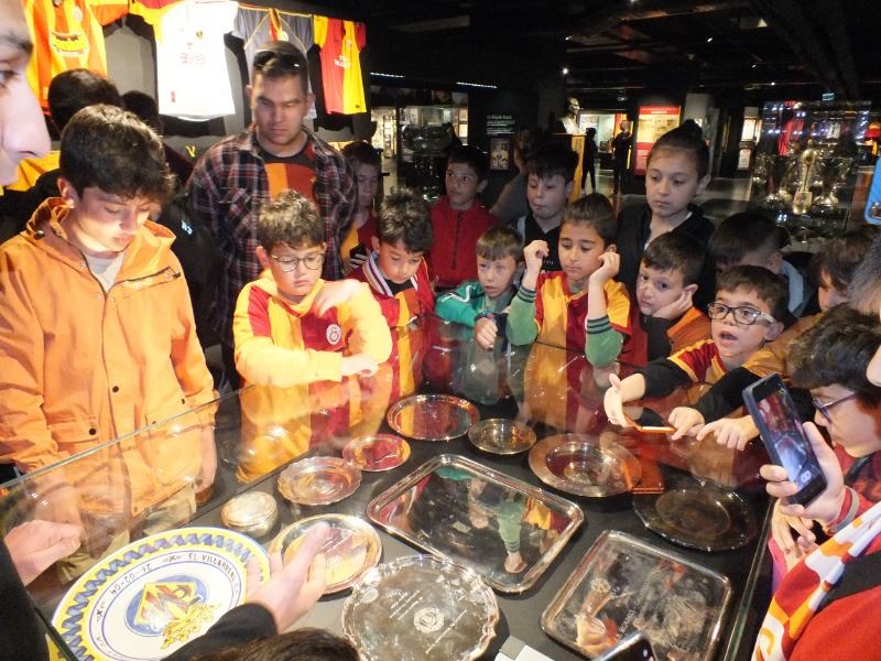 Hakan Yücel başkanlığındaki Galatasaray futbol okulu öğrencileri Sarı Kırmızılı Aslan yuvası NEF Stadyumunda önce mazisi başarılarla dolu camianın 1905 ten günümüze yansıyan başarılarıyla dolu müzeyi ziyaret ettiler.