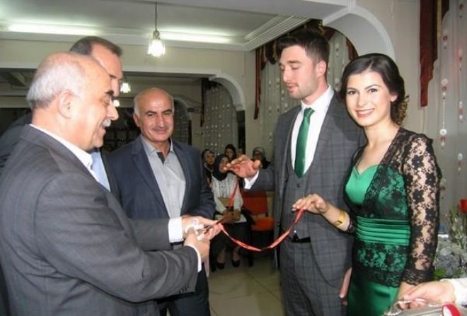 Evliliğe ilk adımı atan gençlerin nişan töreninde yüzükleri İbrahim Tuncer(eski milli eğitim müdürü)taktı.