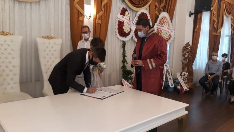 Nikah törenine, Covid-19 önlemleri kapsamında kısıtlı bir konuk topluluğu katıldı.